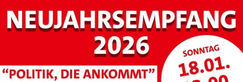 Die SPD Germering lädt herzlich zum Neujahrsempfang 2026 ein, der am Sonntag, den 18. Januar 2026, um 13:00 Uhr in der Stadthalle Germering (Amadeussaal) stattfindet. Gemeinsam wollen wir das neue Jahr begrüßen, miteinander ins Gespräch kommen und darüber diskutieren, wie Politik heute gestaltet werden muss, damit sie die Menschen erreicht.